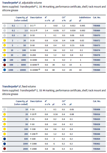Dispensette® S (red color-code): Ideal for dispensing aggressive reagents, including concentrated bases and acids such as H3PO4, H2SO4 (except e.g., HCl, HNO3 und HF), saline solutions, as well as many organic solvents.