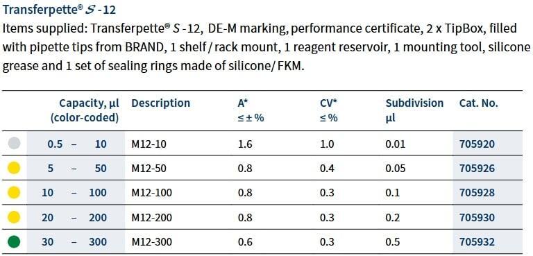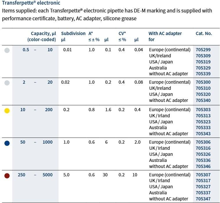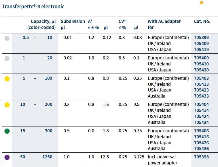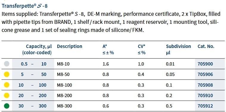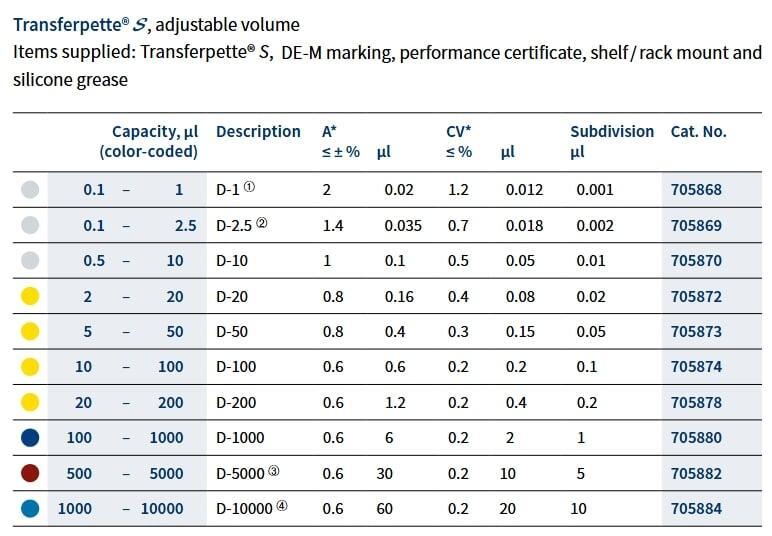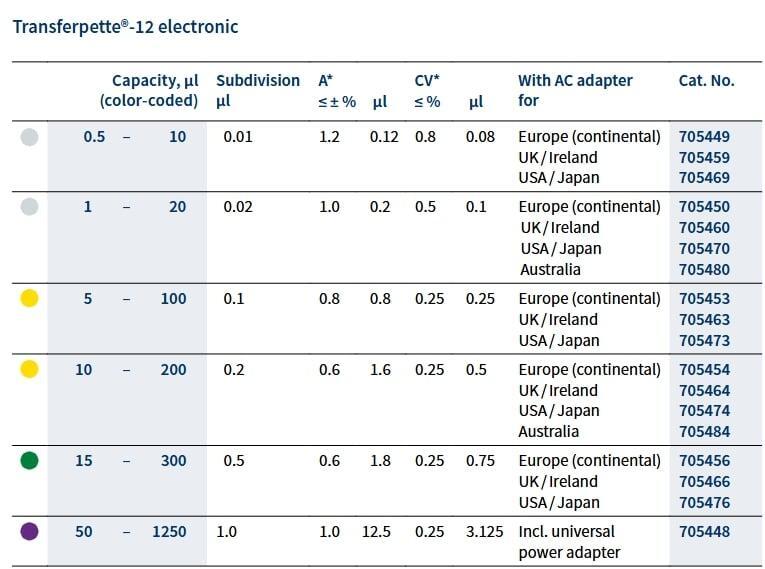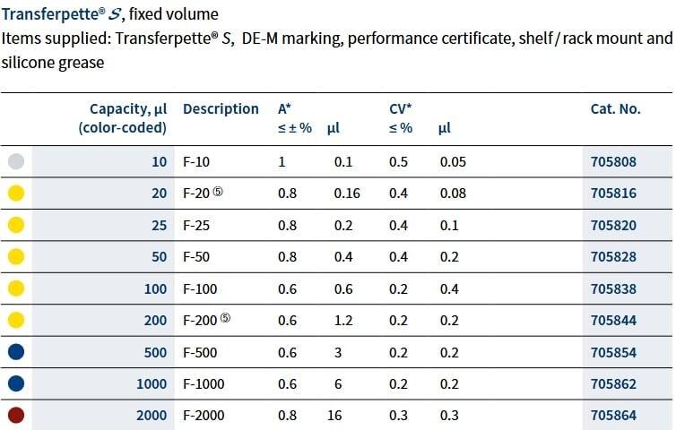 | Catalog No. | Volume Range | Accuracy (±%) | Coefficient of Variation (%) |