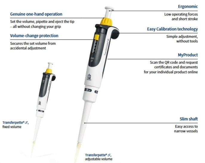 - Volume ranges from as low as 1.0 µL up to 50 mL depending on the model