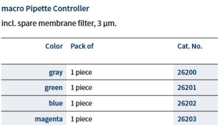 The macro pipette controller is known for being lightweight (125 g), handling volumes up to 200 ml, and is fully autoclavable for sterility. Its hydrophobic membrane filter protects against liquid ingress, and it is backed by a sturdy design for everyday lab work.